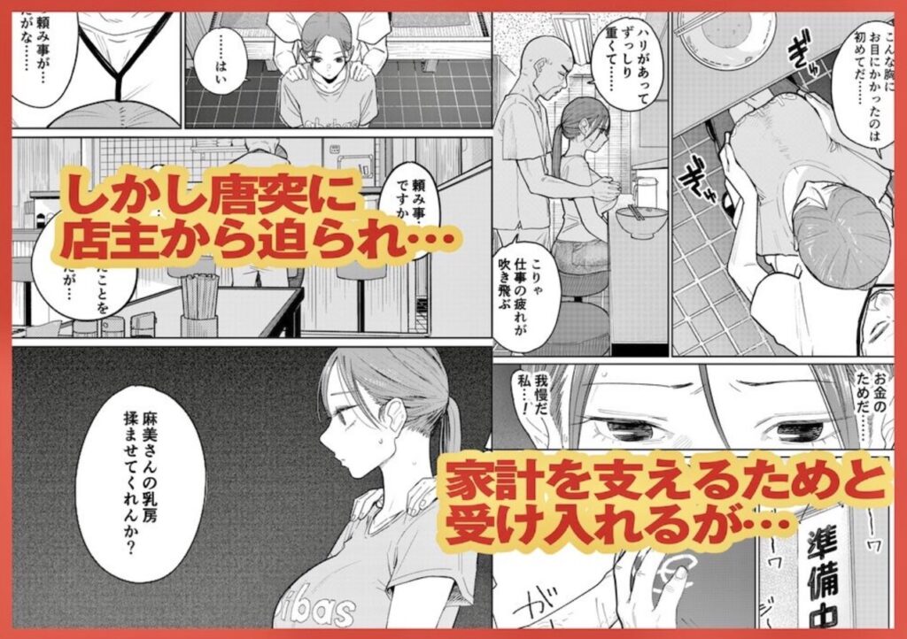初めは胸だけならと受け入れる麻美だったが、要求は日毎エスカレートしていきついには体の関係を持ってしまう。