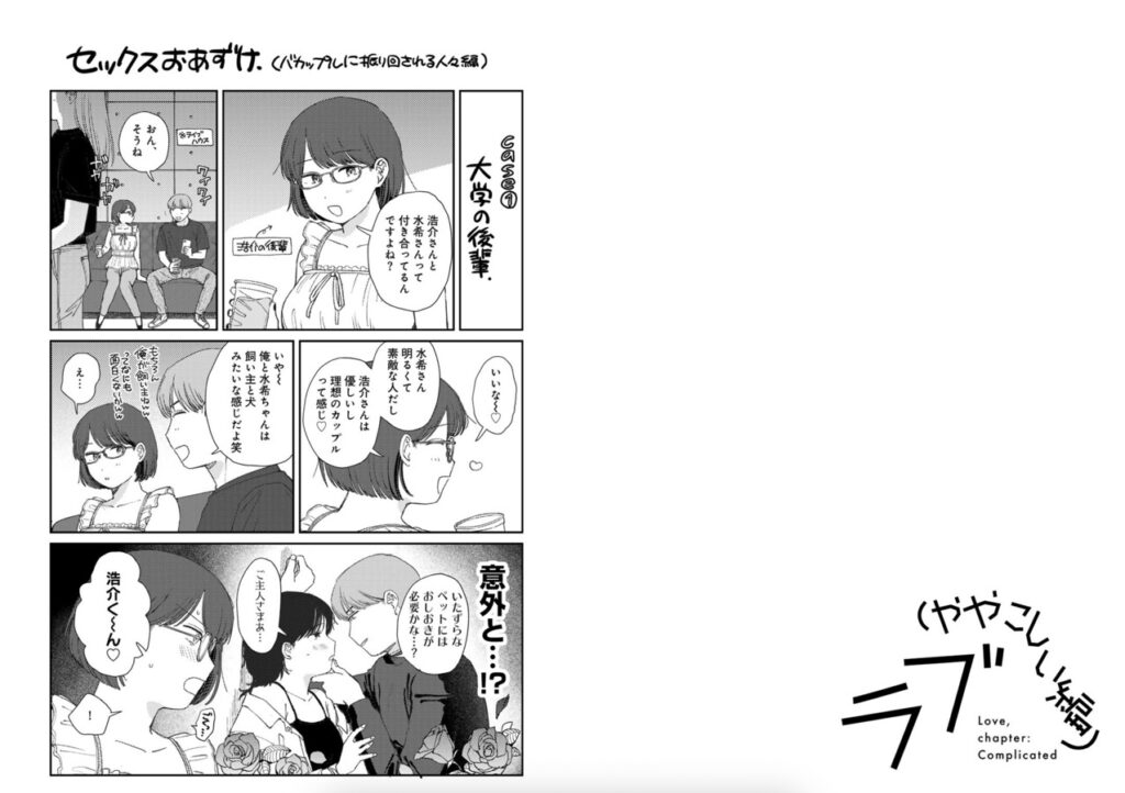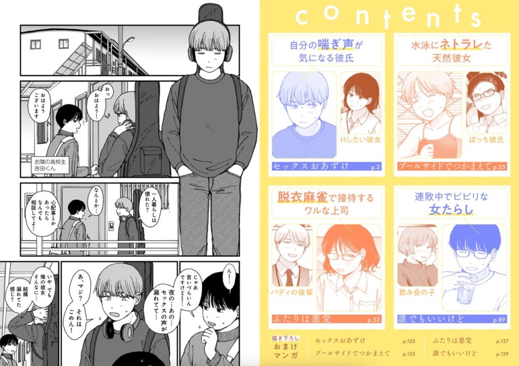 自分の喘ぎ声を気にする彼氏、脱衣麻雀で接待する女上司、連敗中のビビリな女たらしーーちょっとこじれたキャラたちが織りなす、愛しくてクセになる人間模様。